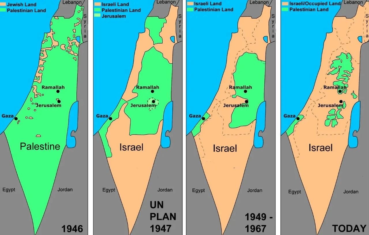 这种分治方案阿拉伯国家与巴勒斯坦人肯定都不能同意,因此战争就是必然。经过数次中东战争、多个和平谈判,以色列实控领域已经远超联合国 181 决议分治方案的版图。
