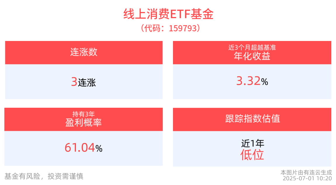 截至6月30日,线上消费ETF基金近1年净值上涨46.91%