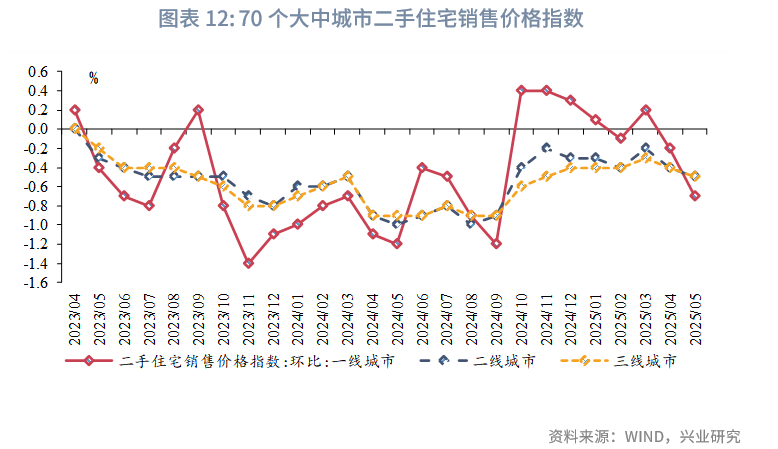 ●房市:楼市修复动力边际走弱,5月一线城市新建商品住宅销售价格指数环比时隔六个月转负。