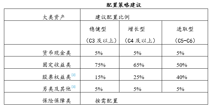 大类资产配置比例仅针对可投资金融资产给出建议,比例仅供参考,根据产品持仓和到期情况调整。