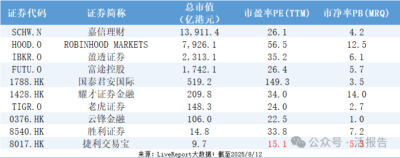 值得一提的是,今年以来香港券商亮点频出,对比港美各大券商PE、PB数据,捷利交易宝整体估值水平具有优势。