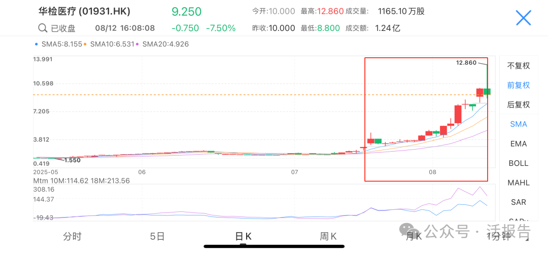接连不断的战略性举措发布引爆资本市场,不足月余,华检医疗股价涨超3倍。