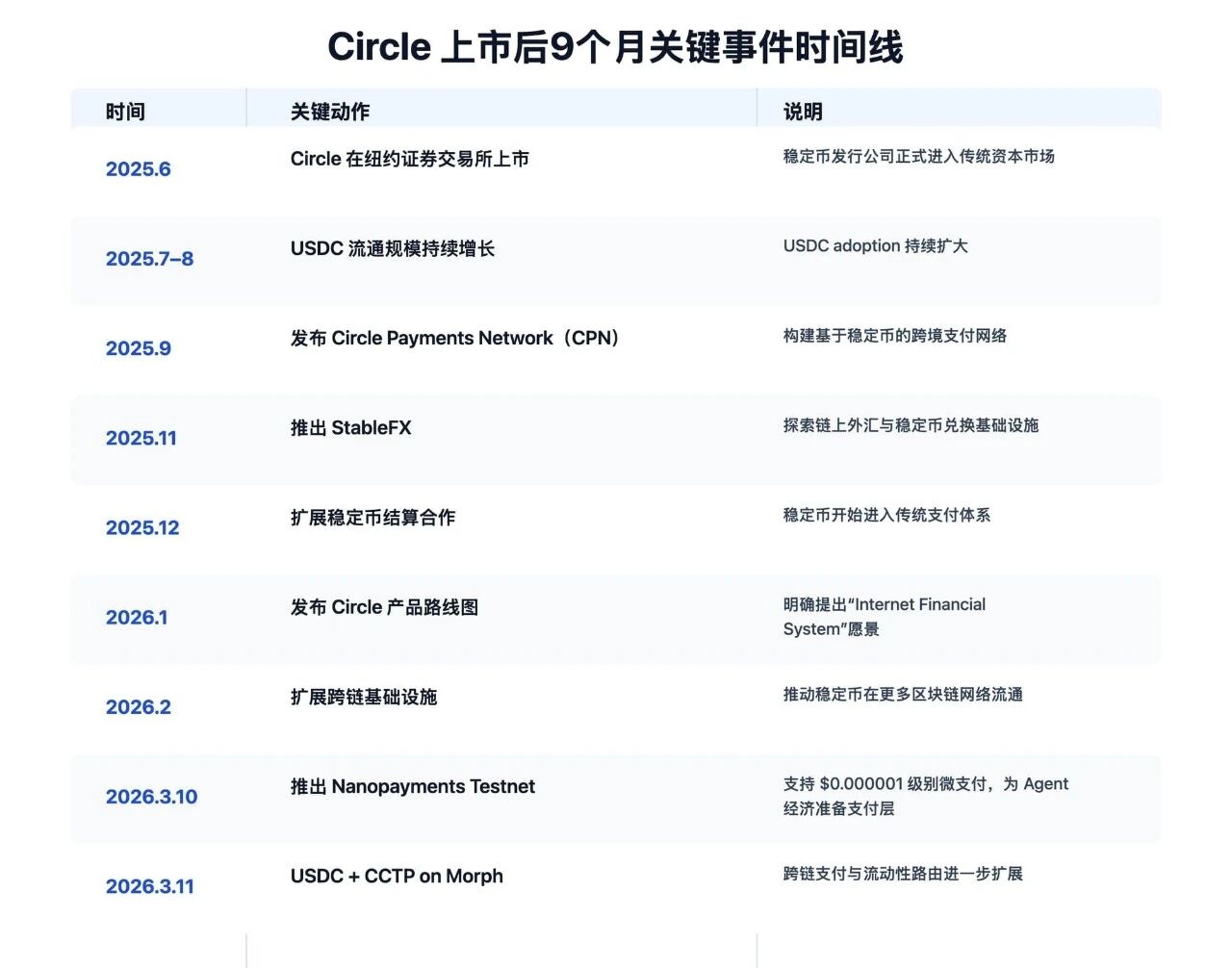 如果只看股價,很容易把 Circle 當成一家穩定幣公司。但如果把上市後的産品動作按時間綫整理出來,會發現另一件事:Circle 正在不斷補齊 穩定幣網絡的基礎設施層。