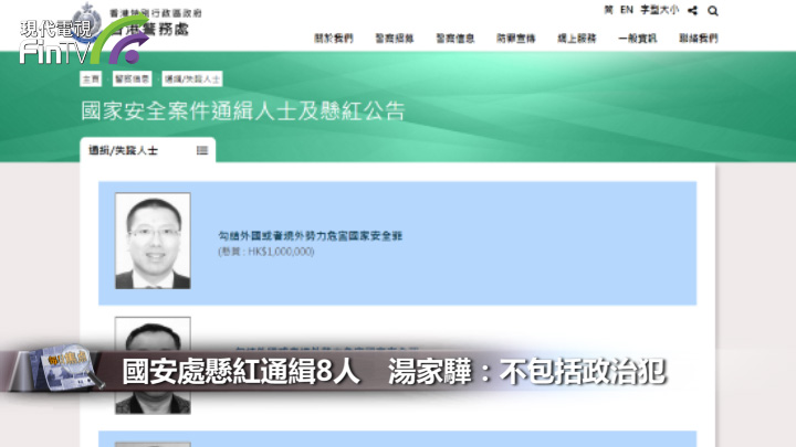 警務處國安處公布「國家安全案件通緝人士及懸紅公告」,通緝8人,各懸紅100萬元。 現時各通緝人士均身處海外,本港與10個國家簽定的《逃犯協議》仍然生效,不過,本身是資深大律師的行政會議成員湯家驊指出,根據聯合國指引,雙方不可移交「政治犯」。 根據律政司資料,本港與19個國家簽定《逃犯協議》,當中10個仍然生效,至於美國、加拿大、英國、德國、澳洲等,則因《香港國安法》生效而中止協議。 保安局今年4月指出,過去5年有兩名被通緝人士成功根據雙邊移交逃犯協定,或適用的多邊國際公約,移交香港跟進。 資深大律師湯家驊表示,司法互助協定只為雙方就刑事案件進行情報交流,移交逃犯涉及《逃犯協議》,協議是按照《聯合國》指引制訂,當中提及不可移交具政治背景人士、政治犯等。 國安處通緝名單上,部份人士在網絡上十分活躍,國安處總警司李桂華在記者會上表示,通緝人士大部份帖文有煽動意圖。 湯家驊就表示,市民若轉載或轉發通緝人士的帖文,需要視乎帖文的犯罪意圖,如果內容涉及危害國家安全,則有機會觸犯《國安法》或相關法律。